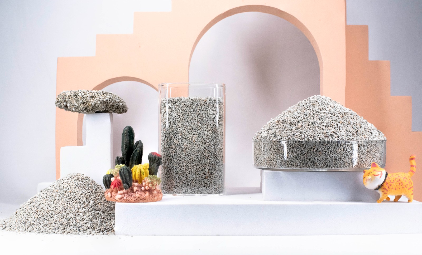 选用优质的膨润土黏土为原料,经湿法钠化、改性等工艺制成。因其原矿颜色不同,分为低尘黑色矿砂、低尘普白矿砂、低尘黄色钠基矿砂等。
