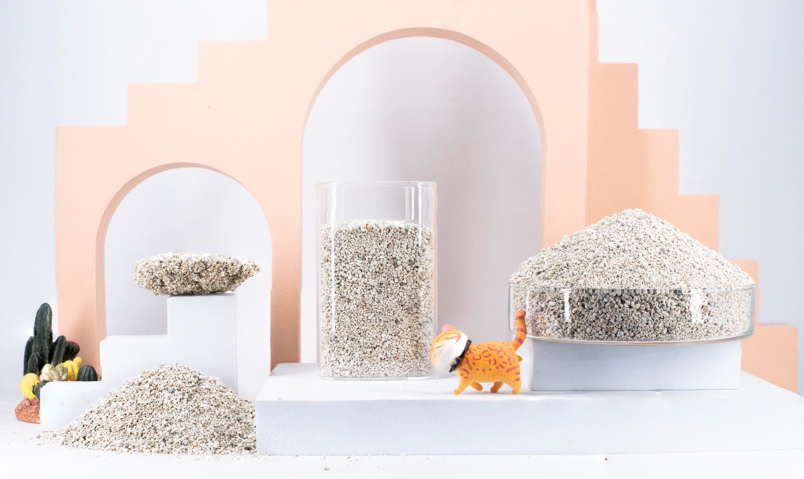 选用优质的膨润土黏土为原料,经湿法钠化、改性等工艺制成。因其原矿颜色不同,分为低尘黑色矿砂、低尘普白矿砂、低尘黄色钠基矿砂等。